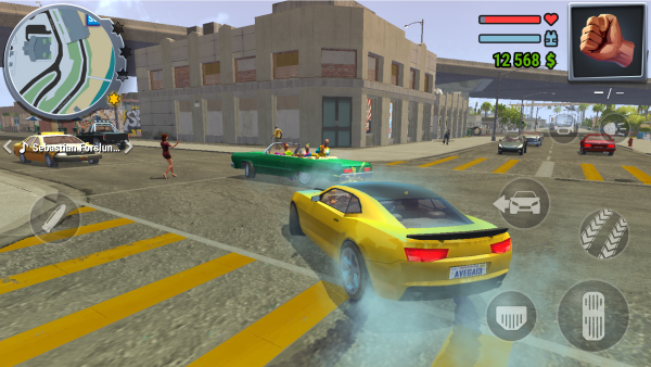 Выполнение заданий позволит повысить свою репутацию, а также зарабатывать финансы, с помощью которых можно будет приобрести недвижимость, автомобиль, крутые пушки и сменить имидж персонажа. Но также можно забыть о заданиях и миссиях, спокойно разъезжать по городу, исследуя каждый поворот. Управление достаточно комфортное, происходит посредством виртуального джойстика с левой стороны экрана, который отвечает за передвижения героя, а также набора кнопок с правой стороны, которые позволят атаковать, прыгать и всячески взаимодействовать с элементами виртуального мира. Взломанная версия позволит использовать неограниченное количество игровой валюты, энергии и боеприпасов, режим бога, нет перезагрузки и многое другое.