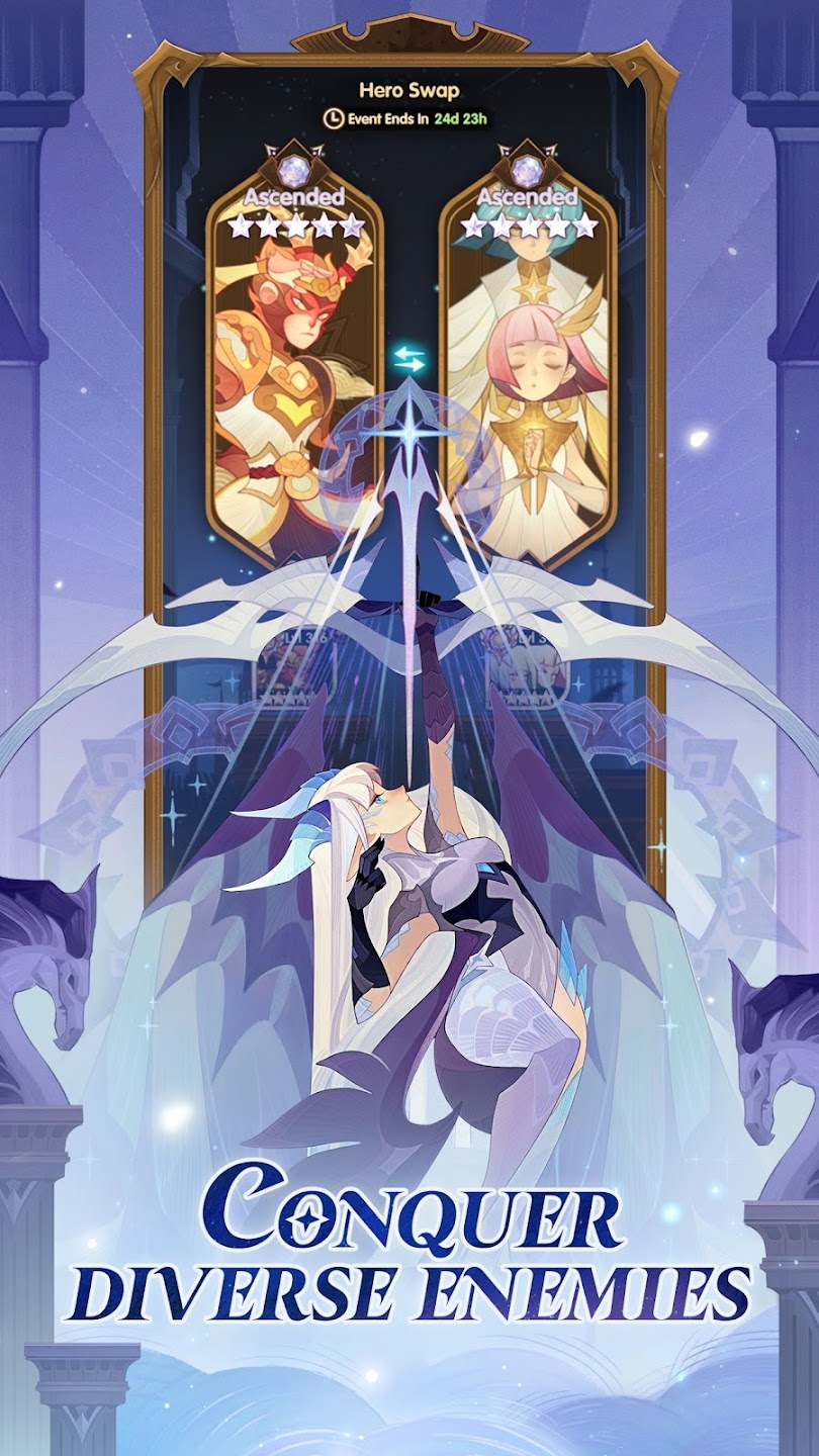 В данном ролевом проекте пользователи окажутся в фантастическом мире под названием Эсперия, где необходимо выступить против сил зла и остановить их распространение на территориях королевства. Во время битвы нужно организовать членов группы, состоящей из пяти человек, где каждый из героев будет обладать уникальными навыками и способностями. В начале необходимо правильно расположить на игровом поле своих подопечных, таким образом воины должны находится в первой линии и принимать на себя наибольшую атаку противника, а сзади расположить магов и лучников. Сражения будут происходит в автоматическом формате, однако геймеры могут вручную включать особые навыки персонажей.
