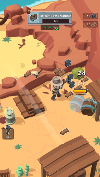 На протяжении всего игрового процесса нужно постоянно исследовать территорию в поисках различные полезных ресурсов, дробить и подбирать все предметы. Однако, стоит отметить, что не ко всему сразу удастся подойти, из-за недостаточного уровня или с данной киркой. Важно не забывать, что герой является сбежавшим заключенным, а значит за ним следует погоня, нужно стараться не попасться и добраться до любви всей своей жизни. Повышение уровня и выполнение заданий будут приносить денежное вознаграждение, с помощью которого можно будет прокачивать свое орудие и разблокировать путь вперед. Взломанная версия позволит кирке наносить большой урон вне зависимости от ее уровня, а также покупка в магазине монет за алмазы увеличит количество алмазов.